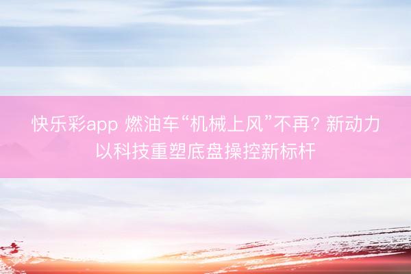 快乐彩app 燃油车“机械上风”不再? 新动力以科技重塑底盘